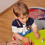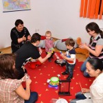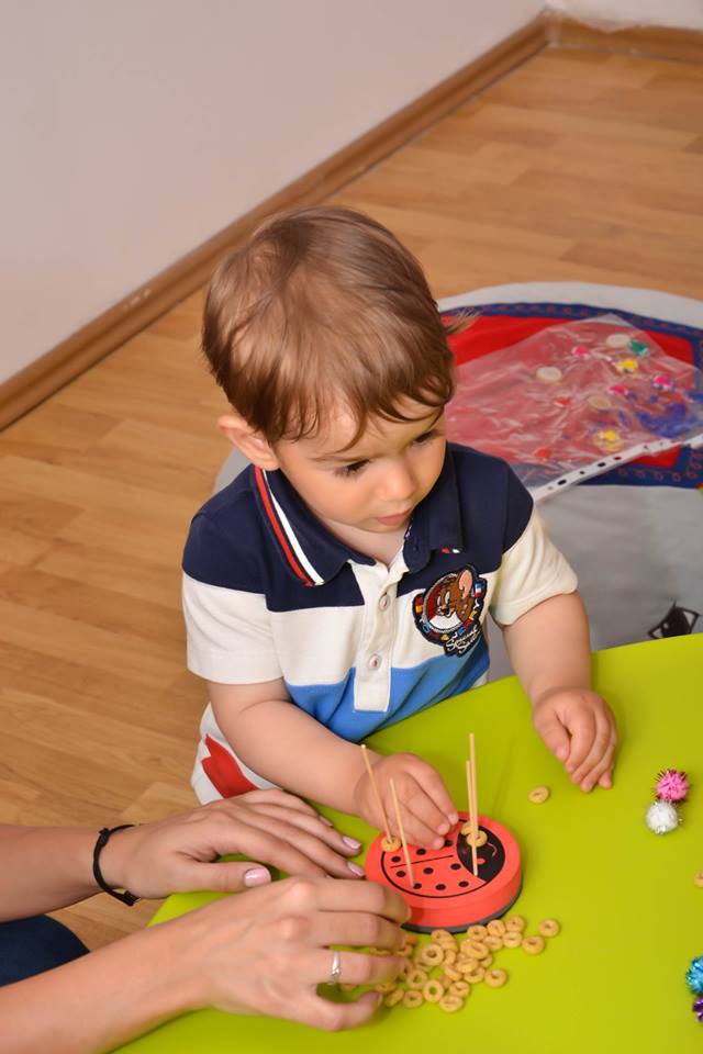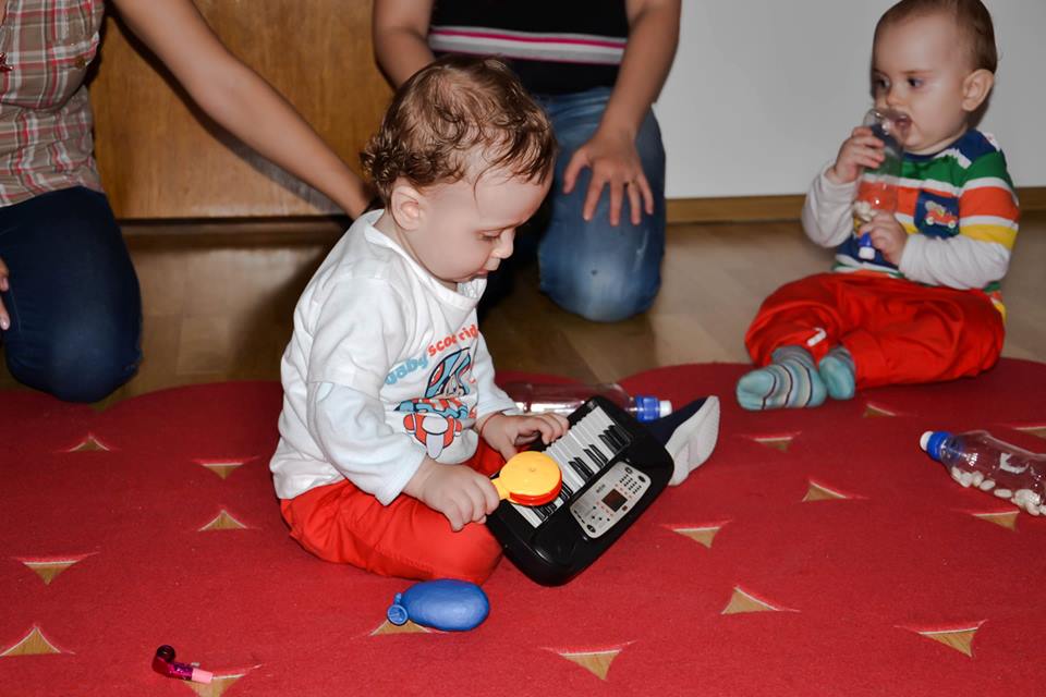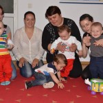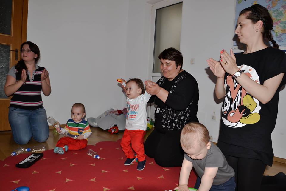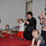 Am facut introducerea prin cateva exercitii usoare de gimnastica deoarece acestea ajuta la intarirea musculaturii manutelor, picioruselor, abdomenului, trunchiului si gatului. Noi ne folosim de gimnastica nu doar pentru a ajuta copilul sa isi dezvolte sistemul motor, ci si pe post de joaca, ca forma de socializare si comunicare.