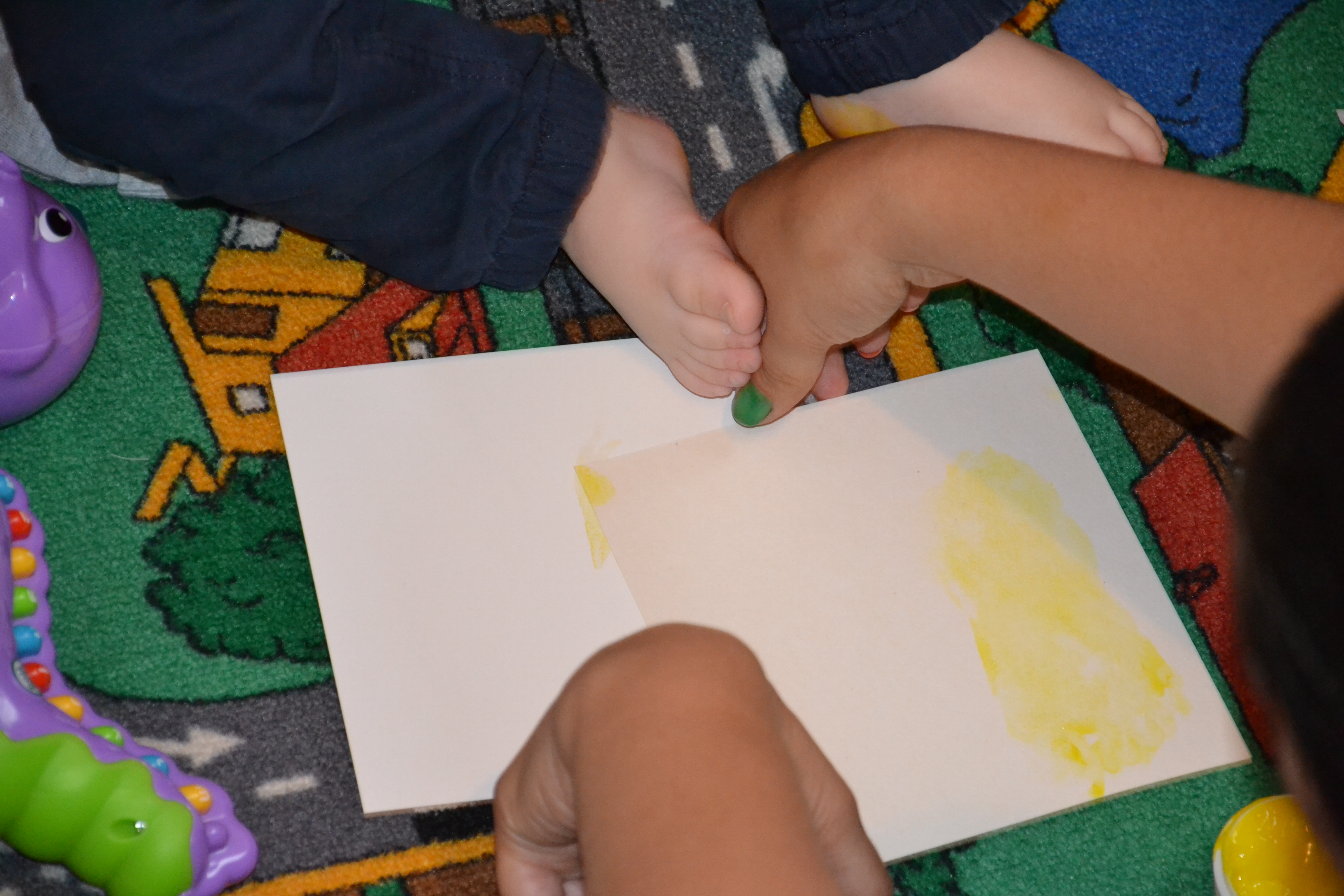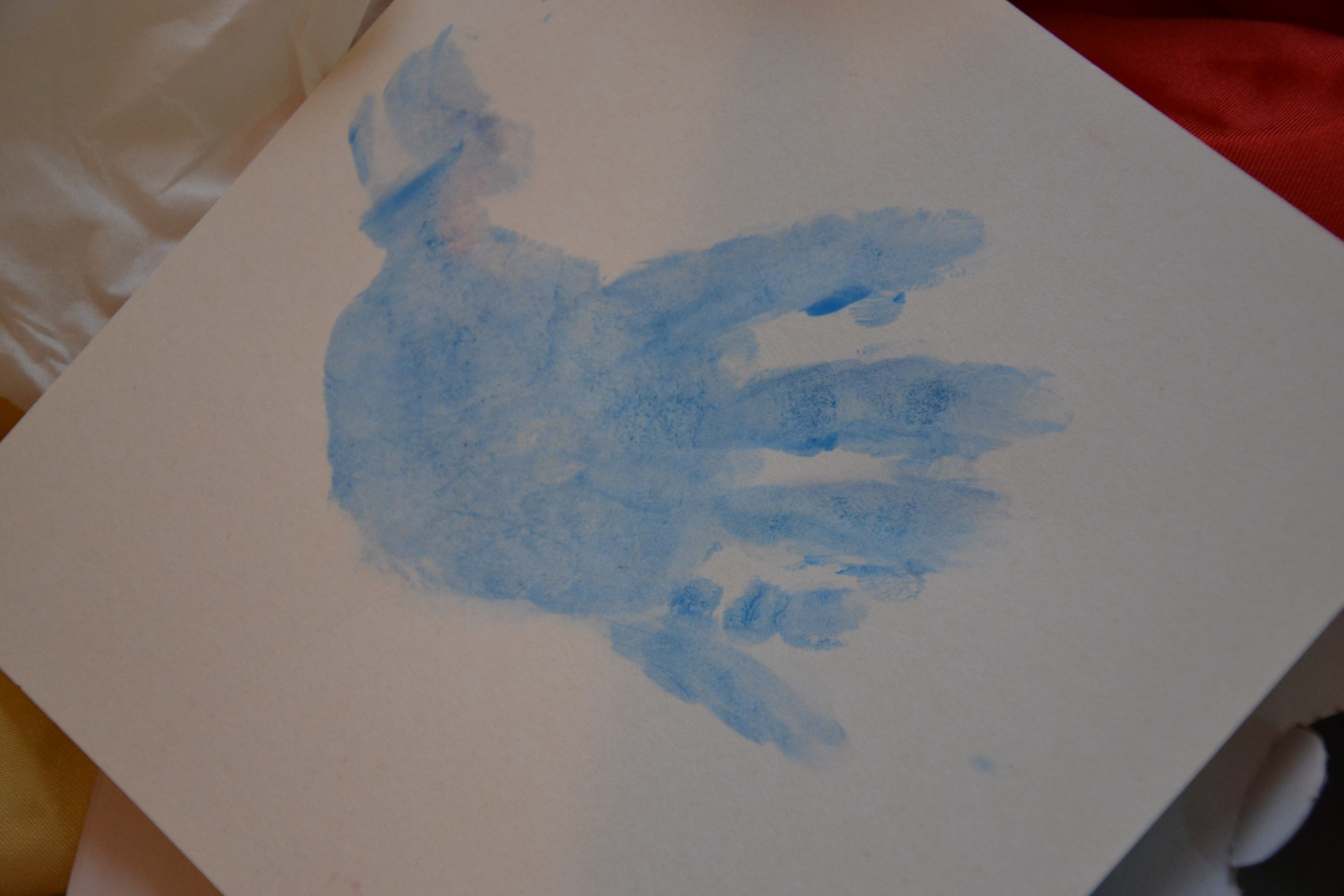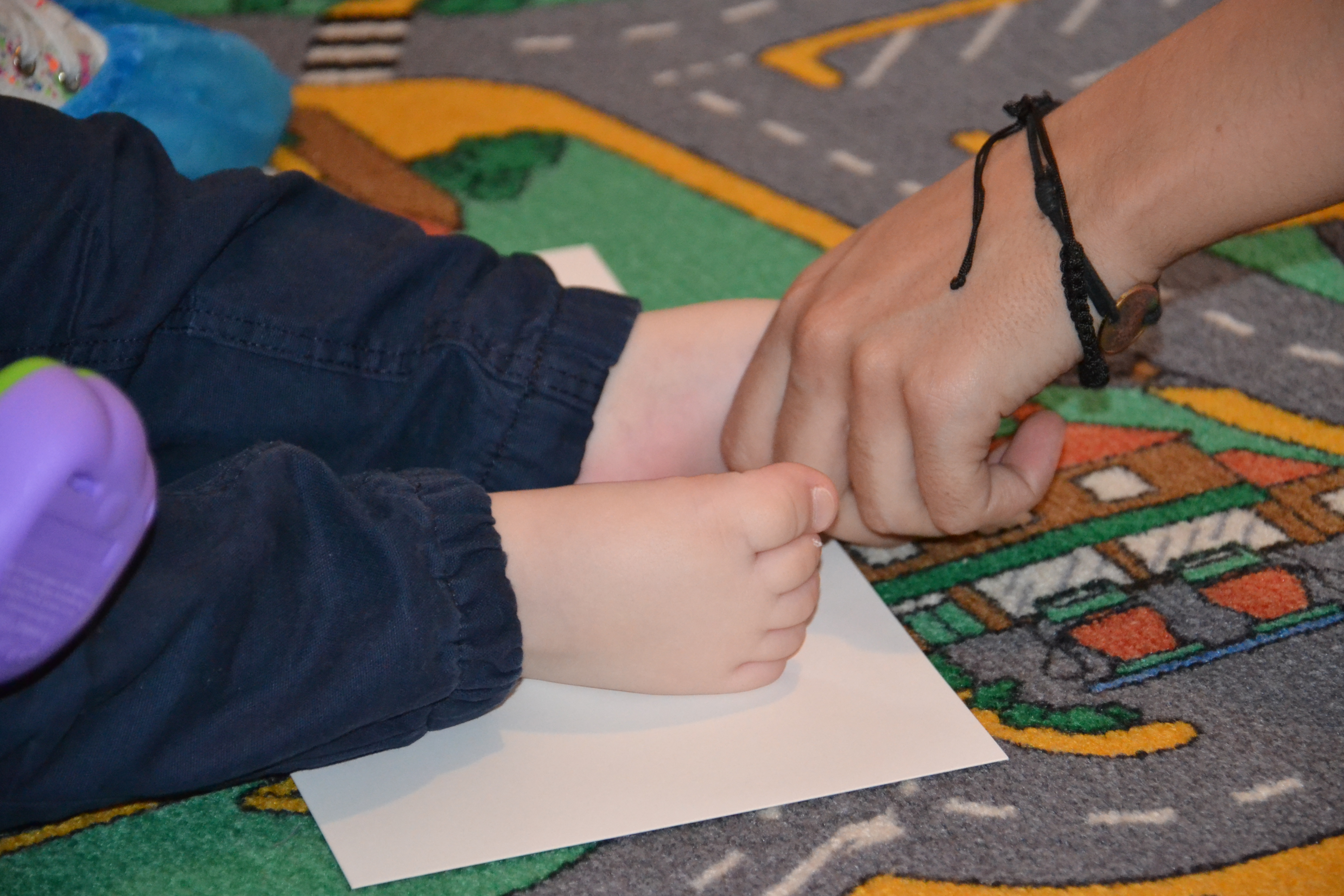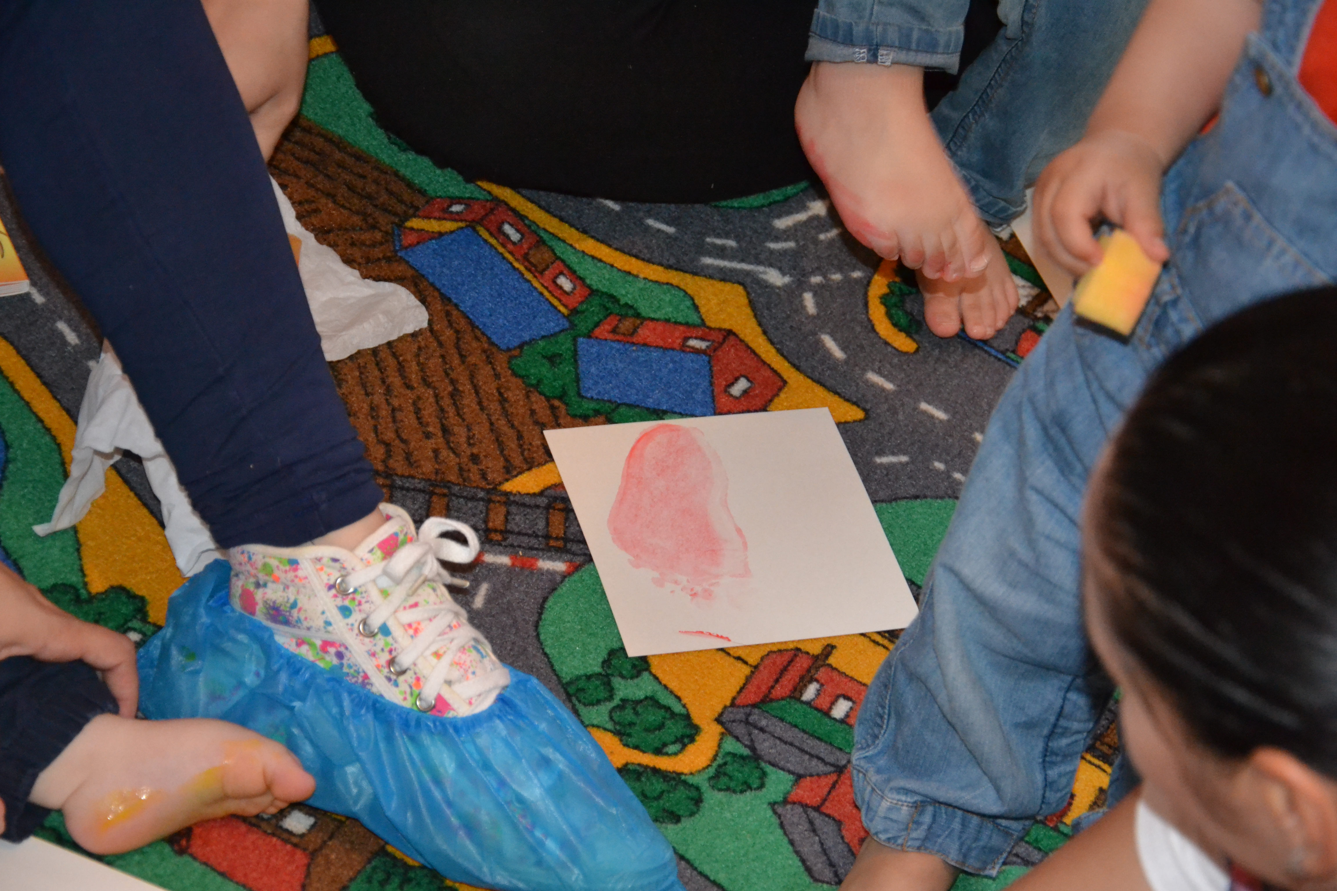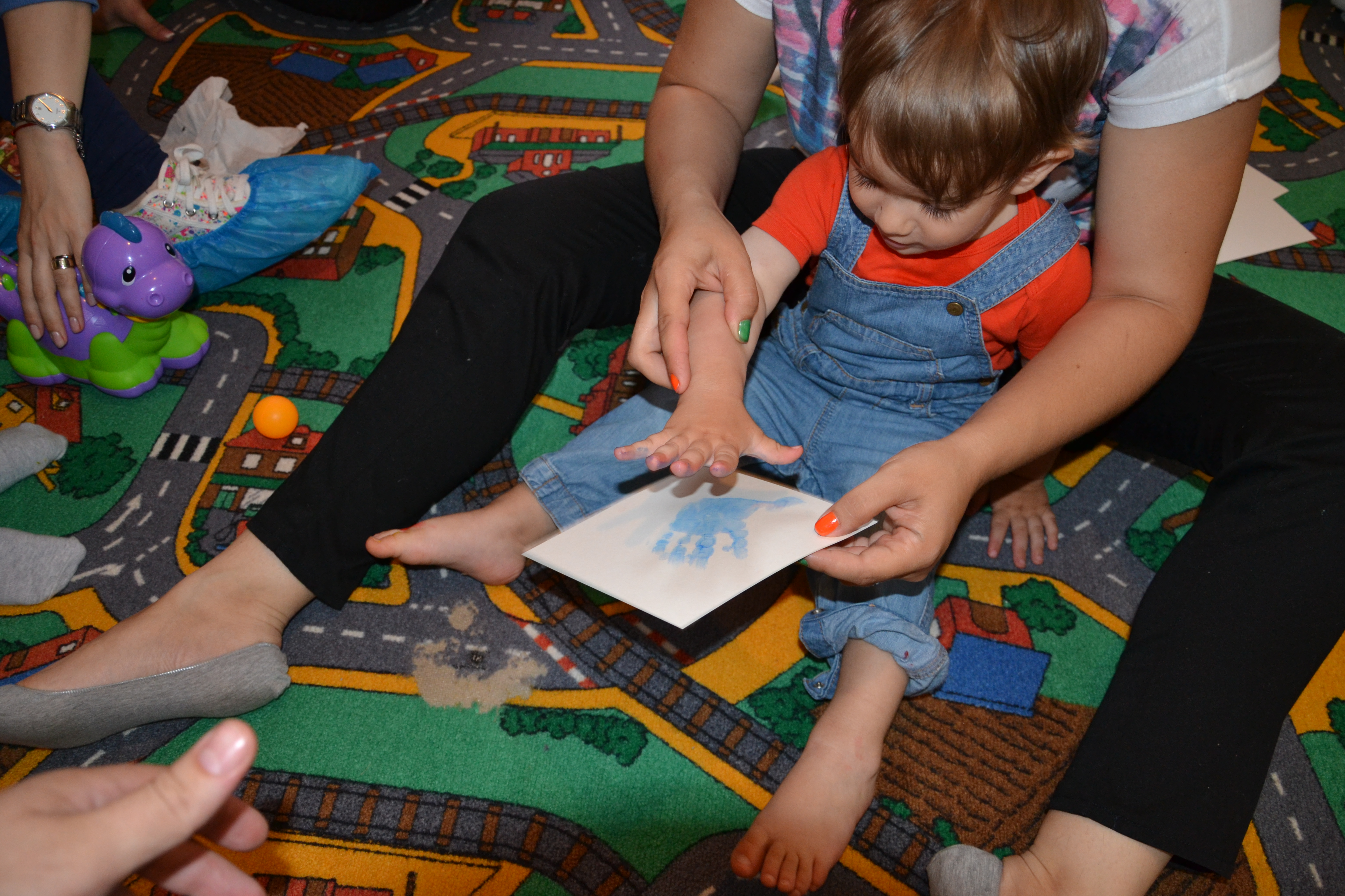 Le-am facut si o surpriza mamicilor, dandu-le un material special de hartie pe care si-au imprimat amprenta piciorusului/manutei pe care sa le pastreze ca amintire din partea noastra.